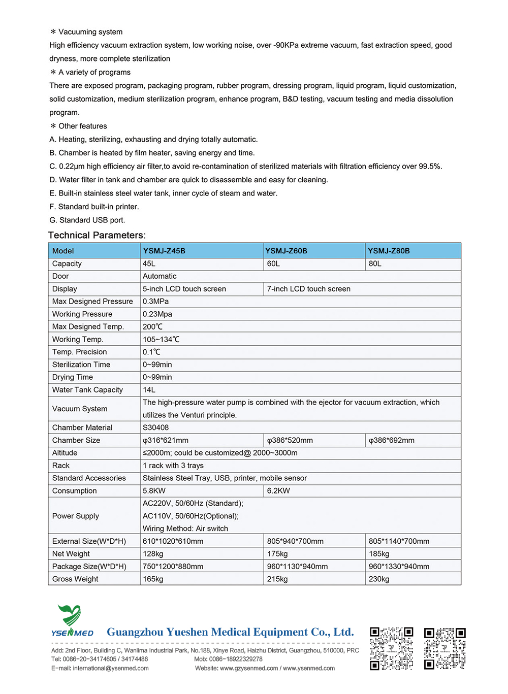 Переходите на автоклав YSMJ-Z45B класса B объёмом 45 л. Сенсорное управление, автоматическая дверца и быстрая вакуумная сушка. Идеальный медицинский стерилизатор для больниц и клиник.