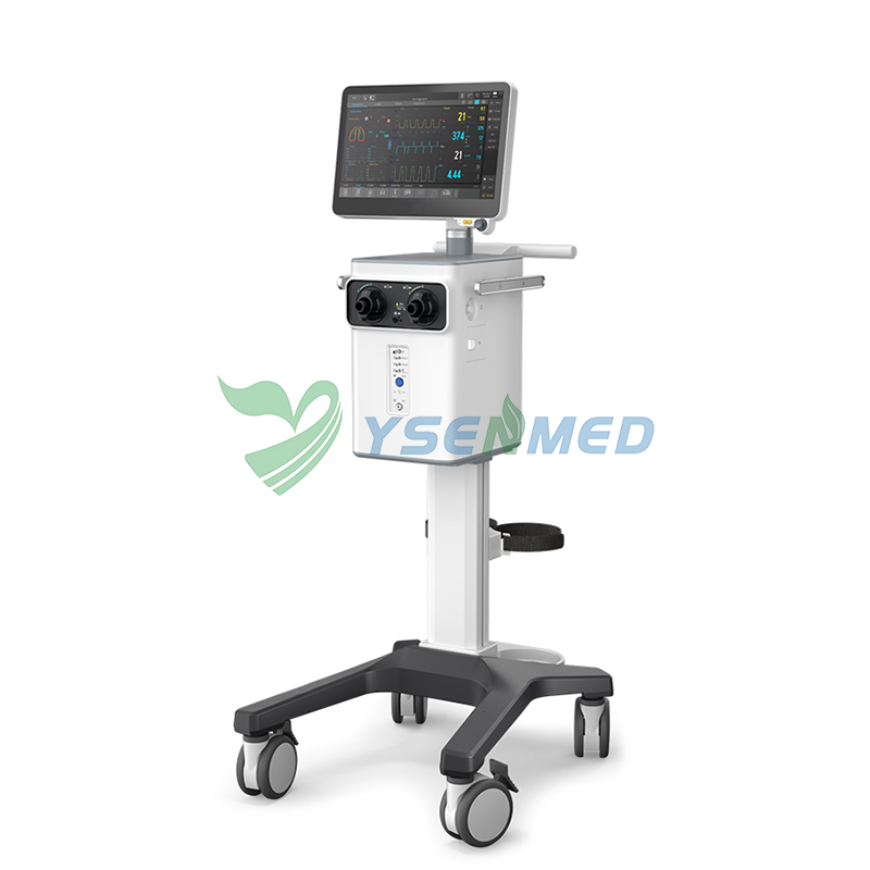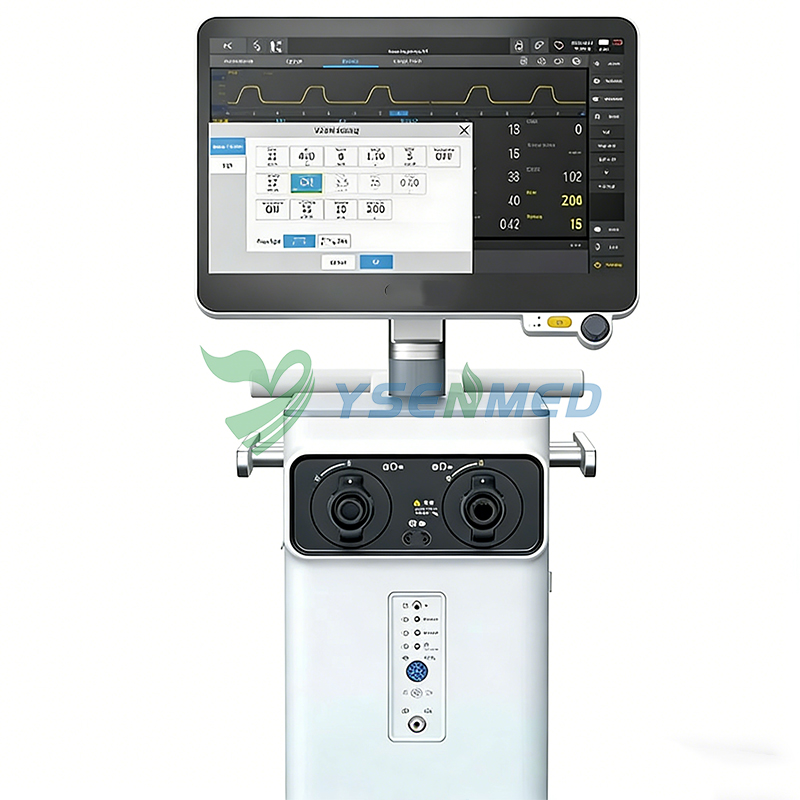 Аппарат искусственной вентиляции лёгких с сенсорным экраном 12,1 дюйма для взрослых, детей и младенцев. Многорежимная инвазивная/неинвазивная поддержка, автоматическая калибровка и самоочистка вытяжного воздуха.