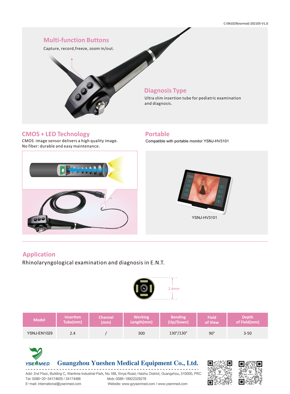 Детский видеориноларингоскоп YSNJ-EN1029: ультратонкая трубка диаметром 2,5 мм для комфортных ЛОР-осмотров у детей. Высококачественное CMOS-изображение и изгиб на 130° для точной и щадящей диагностики.