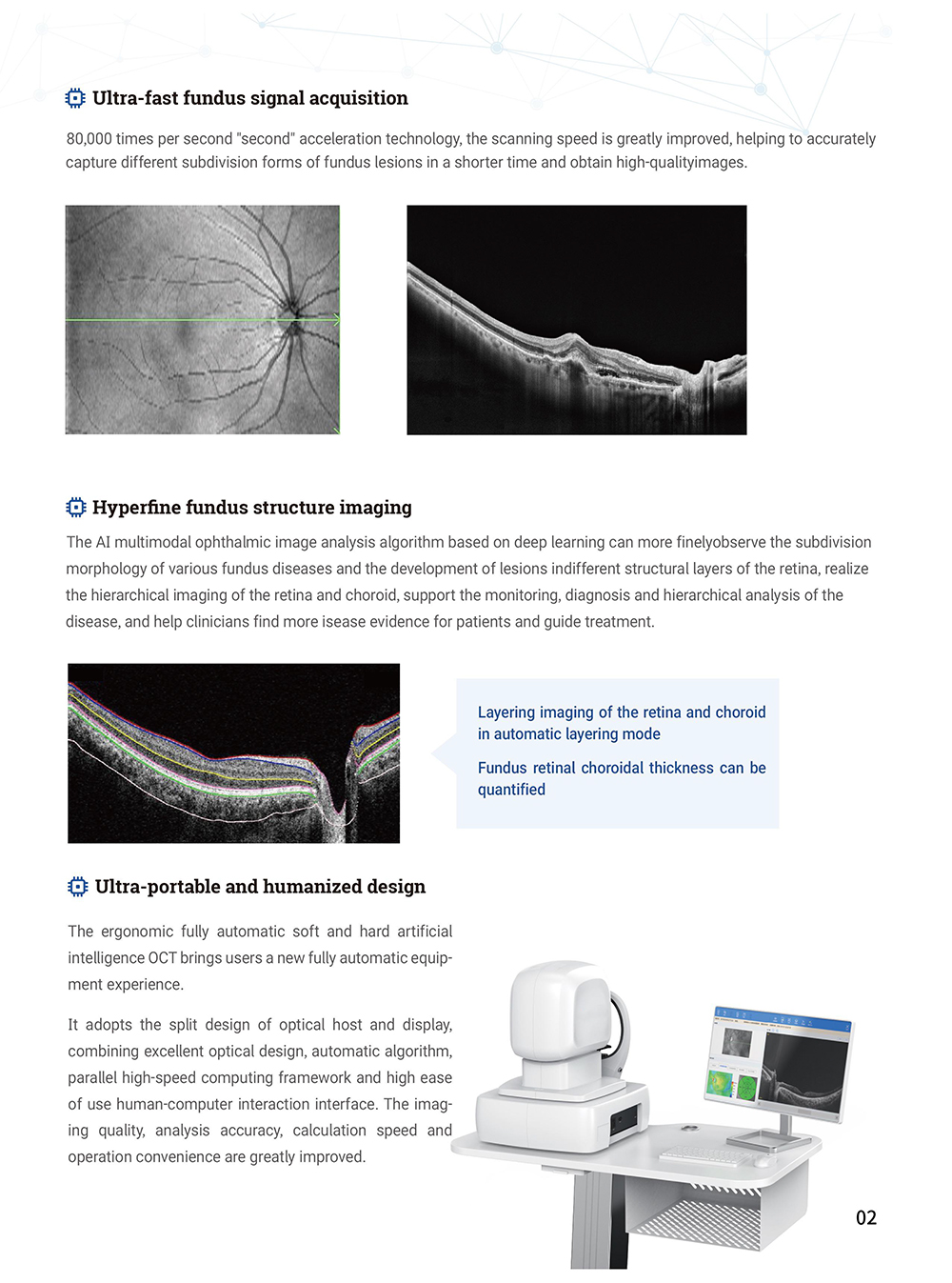 Офтальмологическая ОКТ-система на базе ИИ с широким диапазоном сканирования 12×9 мм, полностью автоматической работой, быстрым проведением обследований и обменом данными в облаке.