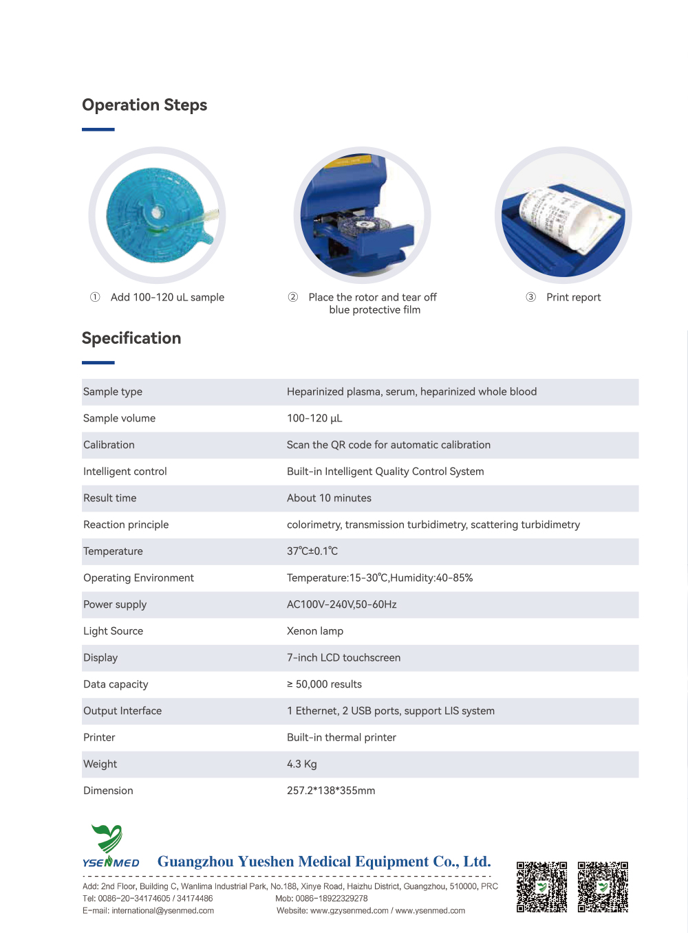 Портативное решение для POCT, позволяющее получить результаты примерно за 10 минут из 100–120 мкл, более 35 анализов, 7-дюймовый сенсорный экран, Wi-Fi, интеллектуальный контроль качества, экономичное решение.