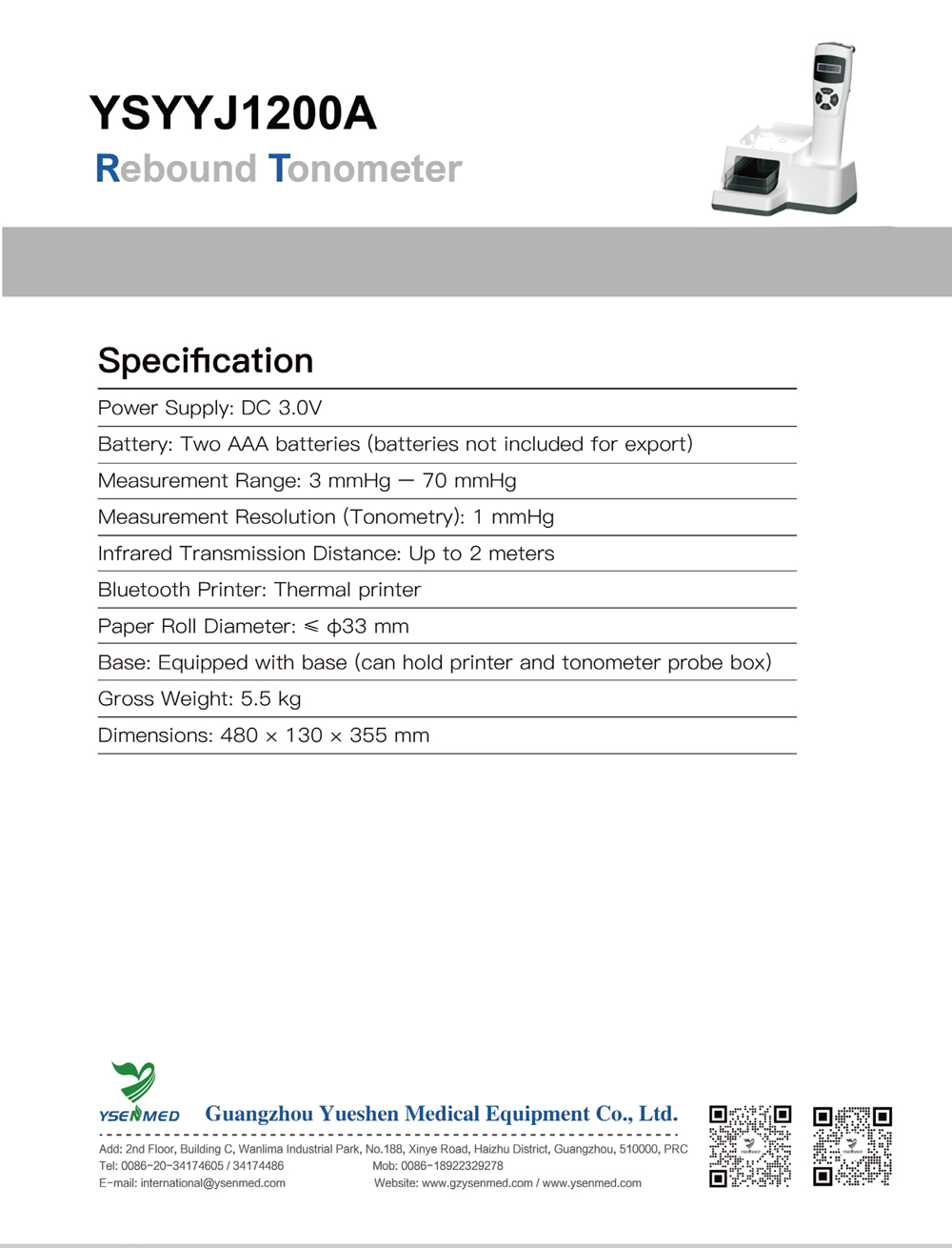Портативный тонометр YSYYJ1200A обеспечивает точное измерение внутриглазного давления в диапазоне 3–70 мм рт. ст., имеет беспроводную передачу данных, функцию печати по Bluetooth и компактный дизайн, подходящий для использования в клинике.